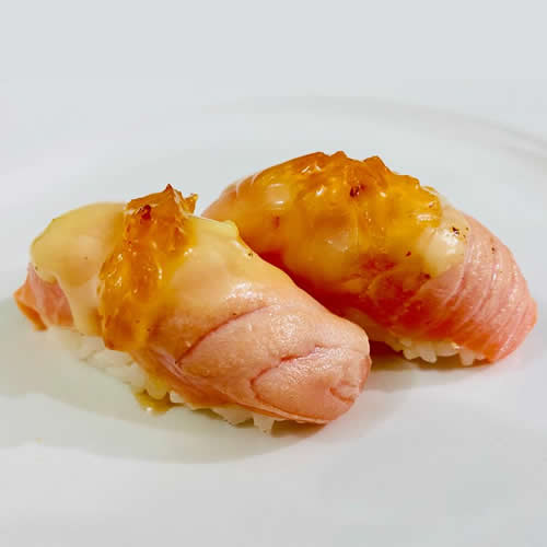 NIGUIRI DE SALMÃO SELADO C/ QUEIJO GORGONZOLA (2 PEÇAS)