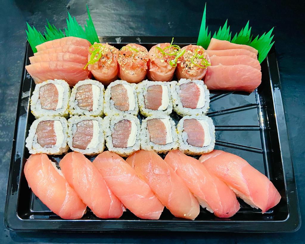 8 sashimis atum; 4 dyo atum; 10 uramaki atum fila; 6 niguiri atum